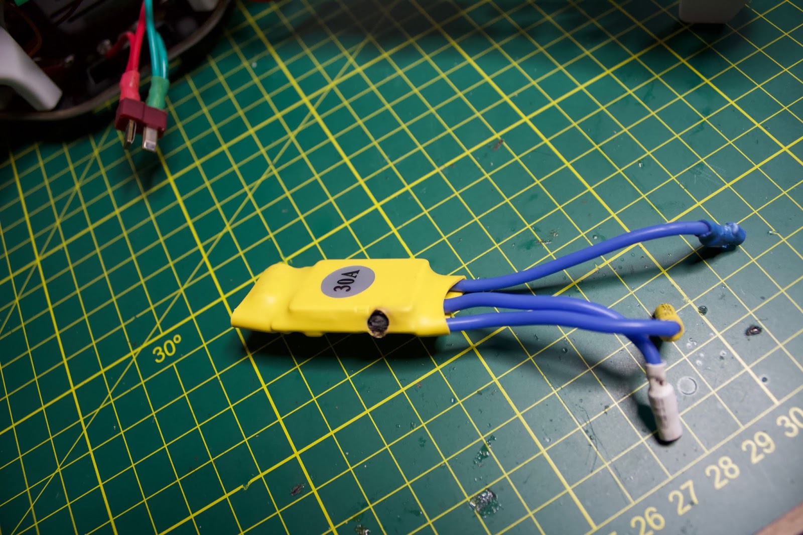 Wire the two front ESC GND (brown) wires to the GND side of the 1k Resistor, then cover the resistors in heat shrink.